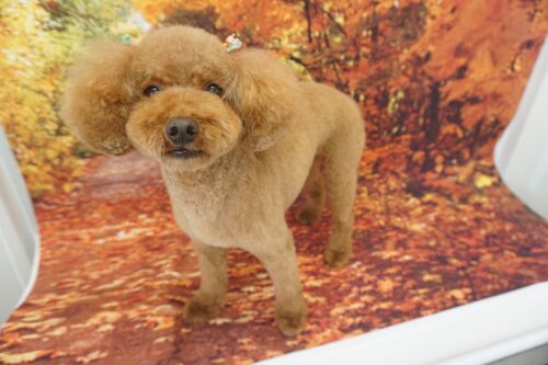 つづいて ☆マルチーズのりんちゃん☆ りんちゃんだいぶ大人っぽくなりましたね~とってもおりこうさんでした! 今日も真っ白ピカピカです♪紅葉の背景に映えますね♪ また次回お待ちしています!